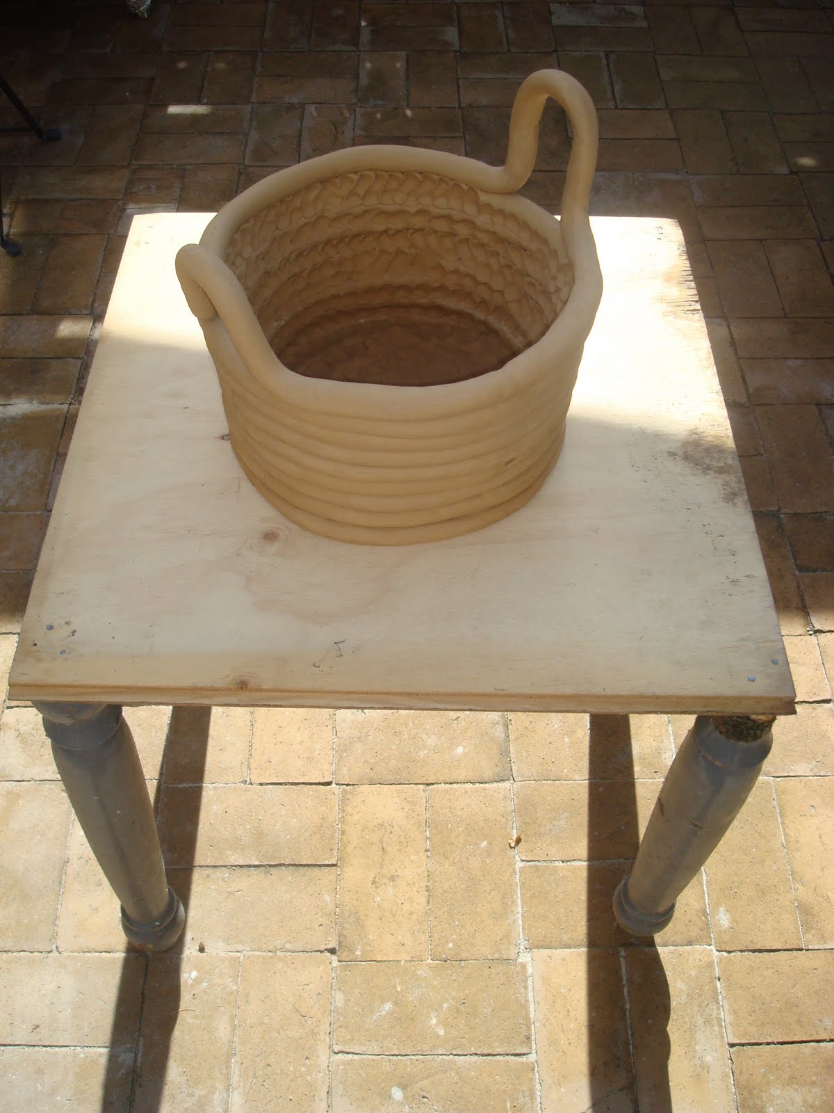 På disse fotos står keramikken helt rå i dets nøgne ærlige materiale ubrændt.